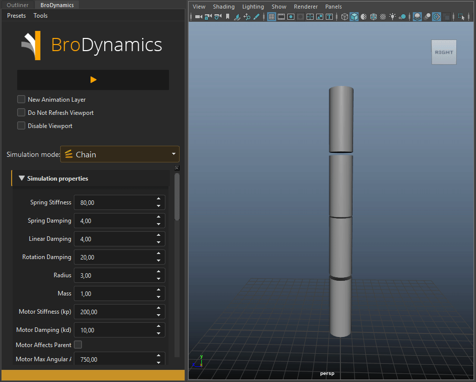 In BroDynamics, you just select your objects and click a button. Adjust settings, retry, repeat until you're satisfied, and save a preset that you can use again.